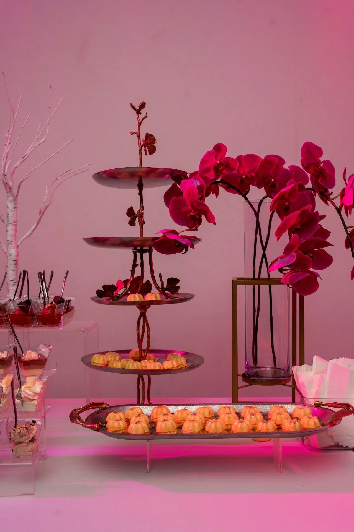 We flipped a station into a jewel-box dessert display from 9:30–10:30 PM, a final burst of color and texture: