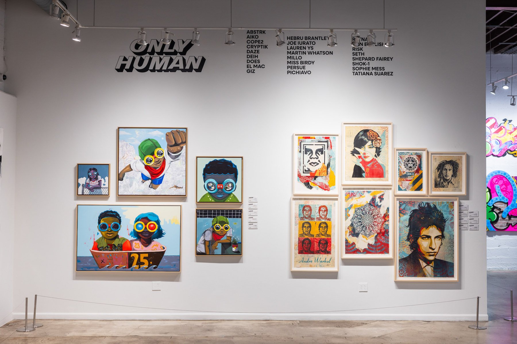 Inside the Goldman Global Arts Gallery, the theme continued through exhibitions and works by artists including Hebru Brantley, Simon Berger, and Sandra Chevrier (among others), expanding the “ONLY HUMAN” narrative beyond the walls and into the gallery context.