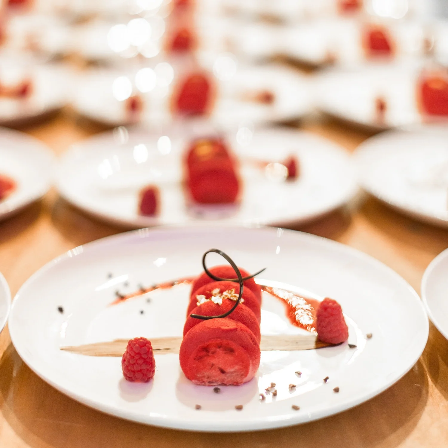 Thierry Isambert's culinary team chose the NWS Gala to debut the three entrées featured on the menu which included a fish, a meat and a vegan option. The entrées were served on plates decorated with fine gold orbs, staying true to the gold and blue color theme and keeping the circular or orb visual theme going throughout the evening.